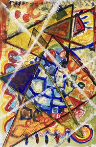 2023Intuïtief geschilderd met acrylverf en stiften. De kijker kan zijn eigen ideeën en invulling hieraan geven. Voor ieder zal dat weer anders zijn waardoor het schilderij blijft boeien.